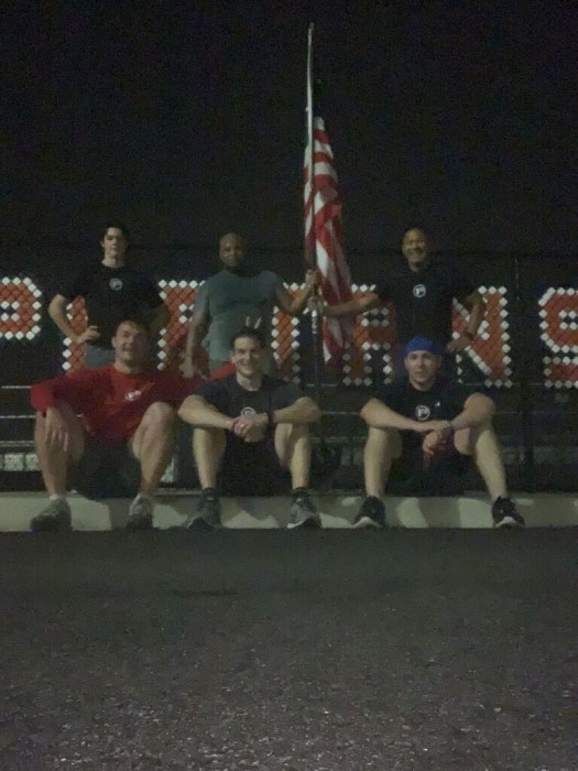 The PAX ran the field stopping at the four corners and the two midfield-touch lines for the following warm-ups: