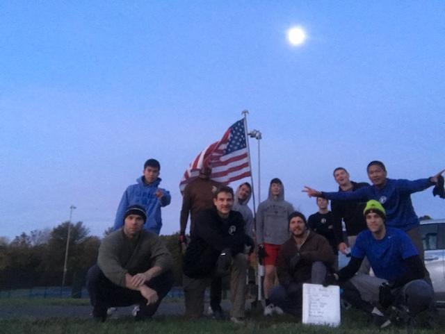 Fellowship laps around field to warm up, SSH, Good Morning, WindMills, HipFlexors, Downward Dog