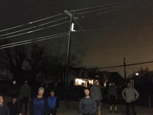 The Thang: Mosey from Field to Arena via Yorktown Boulevard to get that hill in. Find a spot on the wall for Step Ups x10 straight into Derkins x10 – five sets. Mosey toward basketball court with a quick ~50 yard Bearcrawl break. Mosey to gym entrance, find a spot along the railing for Aussies x10 straight into Merkins x10 – five sets. Mosey back to the arena and back to that wall for Dips x30 followed by Air Squats x30. Mosey on back toward the basketball court with a ~50 yard Crab Walk thrown in. Line up along the b-ball court sidelines for Shoulder Taps x10 straight into Mountain Climbers x10 – five sets. Mosey to the field for Hand Release Merkin / Jump Squat pyramid concluding with 11 HRM’s. Between the moseying, mountain climbing and pyramid, YHC’s watch tracked 1.9 miles of travel.