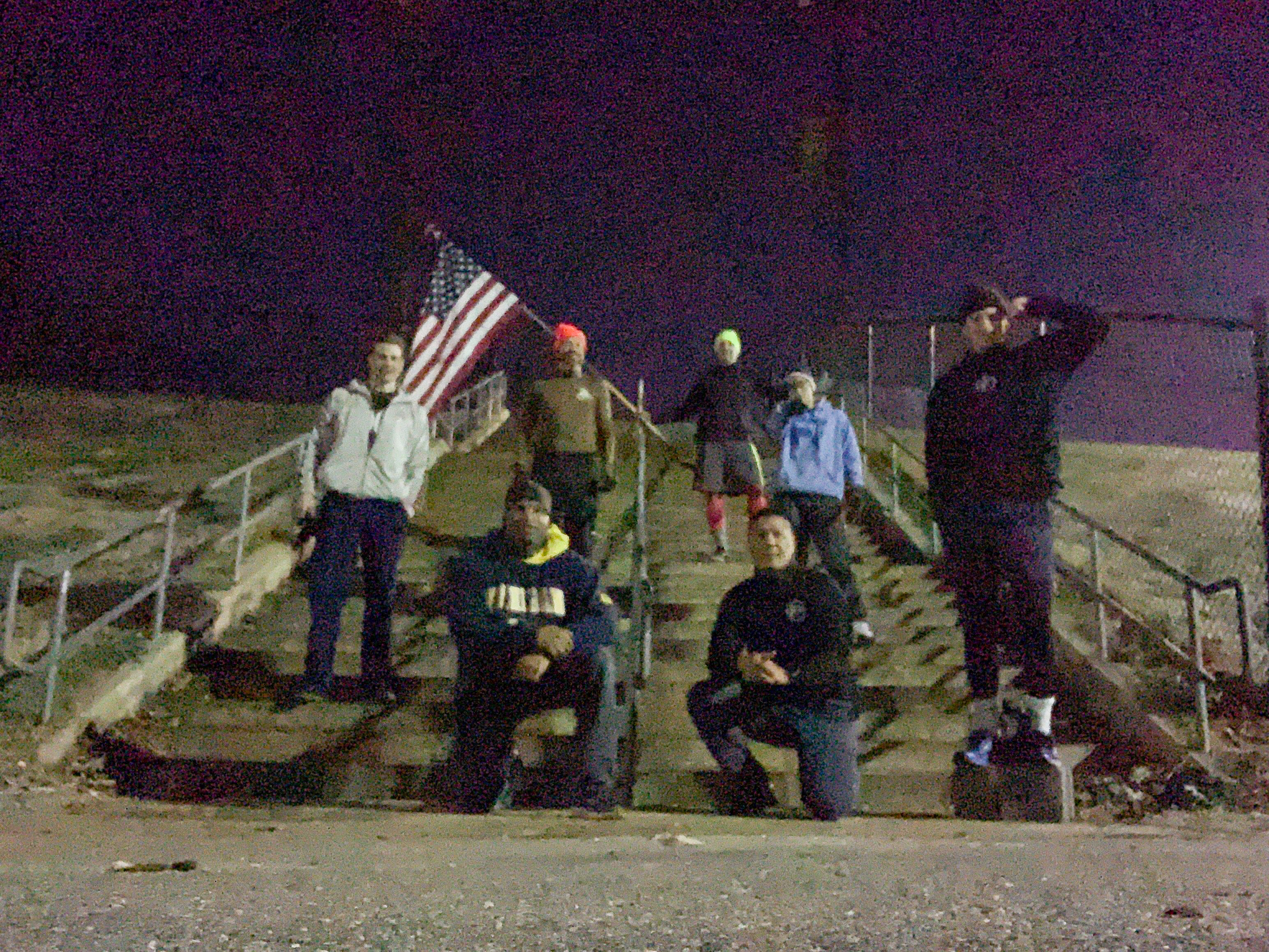 The final push consisted of all PAX holding plank on their CB. The first man completed 2 merkins then murder bunny for 5 yards, followed by a sprint to the start (5 yd) and back (5yd), then the next PAX went. This was done again, but the sprint was 10yrds.