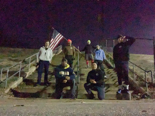 At this point it was time to start laying some brick. The PAX lined up down the parking lot with a CB on each side. The man at the end of the line swung his block man, and ran to the front of the line, where he would begin receiving blocks and passing them on. This continued for about 100 yards, until they ran into the fence.