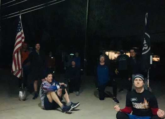The Thang: Mosey from Field to Arena via Yorktown Boulevard to get that hill in. Find a spot on the wall for Step Ups x10 straight into Derkins x10 – five sets. Mosey toward basketball court with a quick ~50 yard Bearcrawl break. Mosey to gym entrance, find a spot along the railing for Aussies x10 straight into Merkins x10 – five sets. Mosey back to the arena and back to that wall for Dips x30 followed by Air Squats x30. Mosey on back toward the basketball court with a ~50 yard Crab Walk thrown in. Line up along the b-ball court sidelines for Shoulder Taps x10 straight into Mountain Climbers x10 – five sets. Mosey to the field for Burpee / Jump Squat pyramid concluding with 11 Burpees for total of 66 toward your daily goal. Between the moseying, mountain climbing and pyramid, YHC’s watch tracked 1.9 miles of travel.