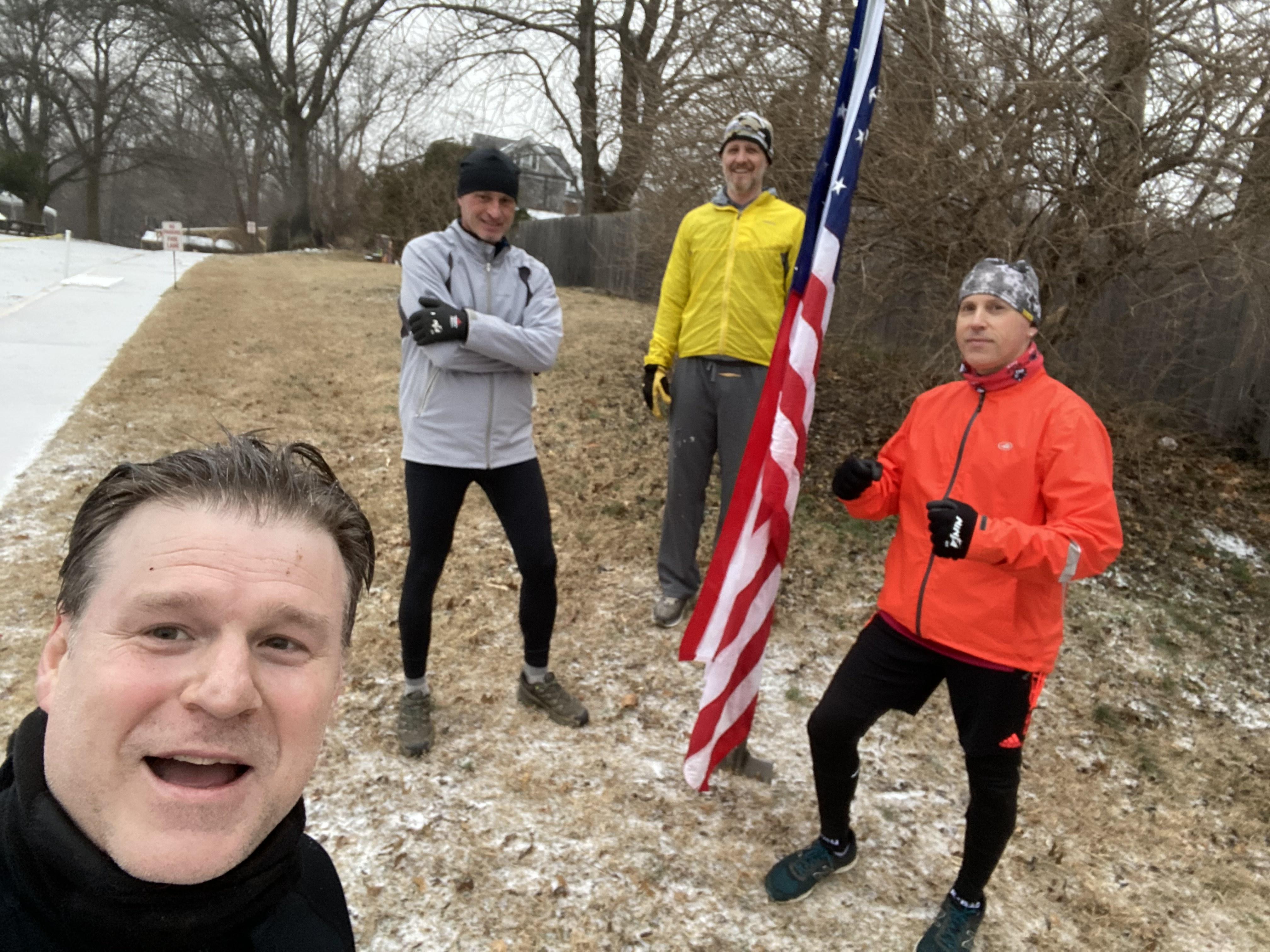 The Thang: Ladder (first round 1rep, second round 2reps, … 10reps) with four exercises. Adapting to the snow/ice conditions… with 5 SSH between each round: