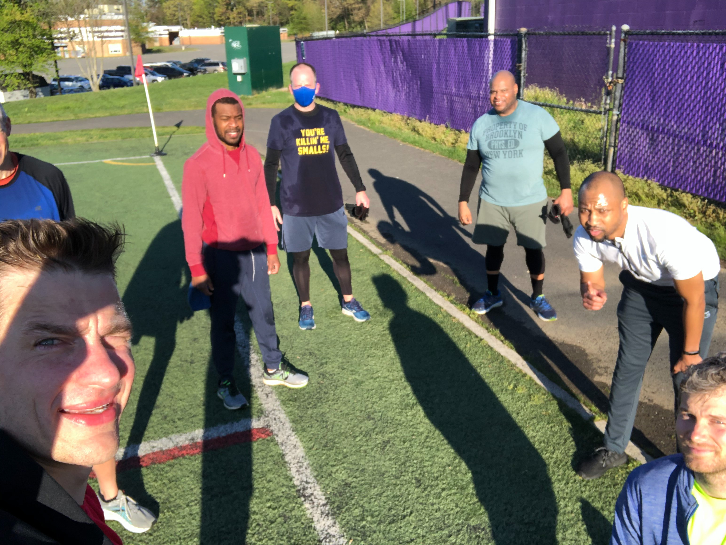 With over 20 minutes left on the clock, YHC lined the PAX up on the end line. They didn’t know it at the time, but YHC was waiting to hear the first prediction of what we were going to do next and did it. Expecting to hear sprints, or lunge walks, or shuttle runs, etc. But apparently YHC has a reputation for doing burpees and the “burpee century” was the first thing I heard. So, we set out doing 1 burpee/yard the entire length of the field. To maintain a good pace we had a timer going, 10 yard (i.e., burpees)/minute. Ten minutes later we were done.
