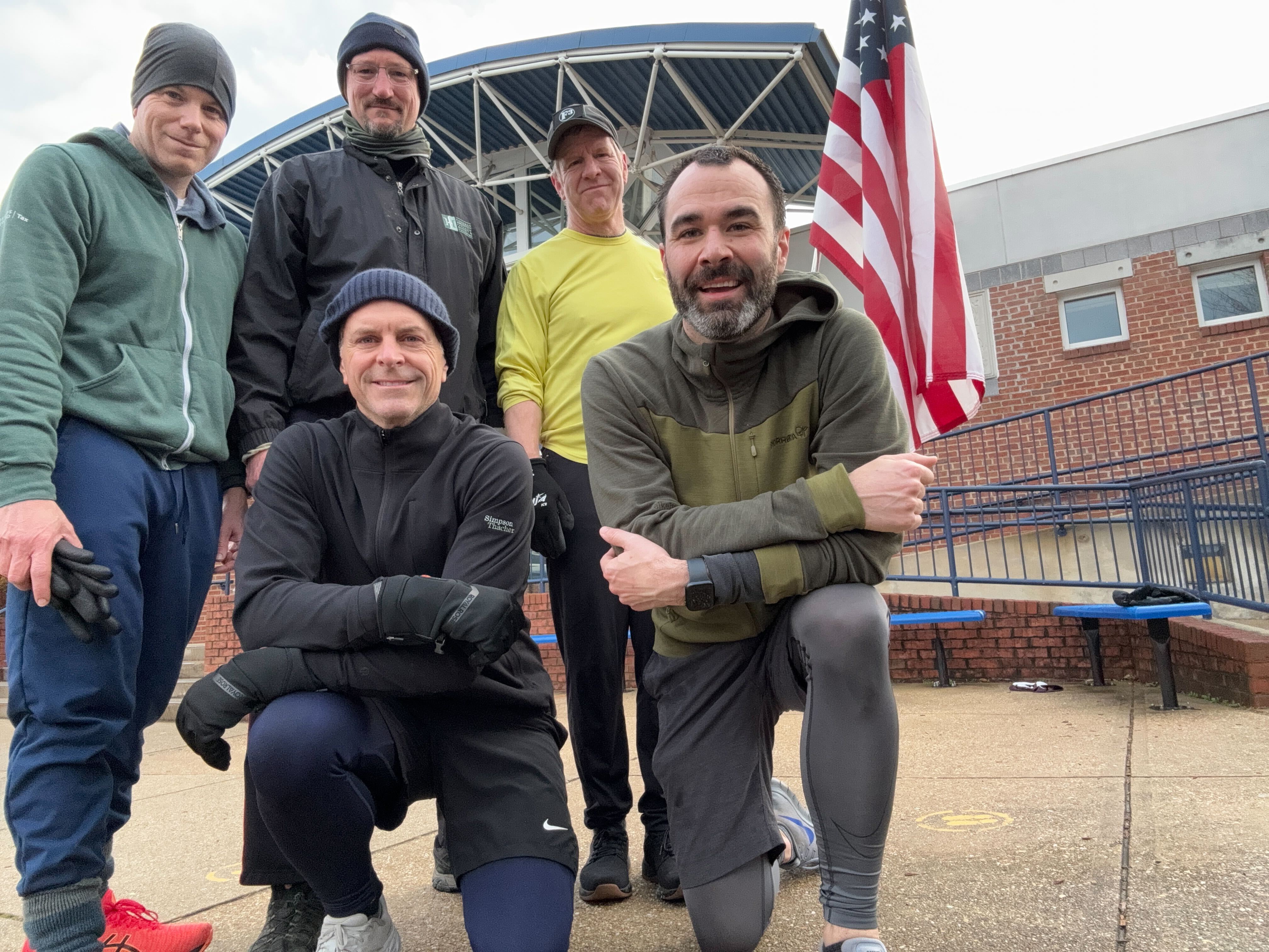 THE THANG: three sets of 20 dips + 20 stepups, then three sets of 20 merkins + 20 vups/American hammers/WWI sit-ups + 20 mountain climbers, then mosey to Custis trail for 5 sets of burpees up the hill: Start with 8 burpees at the bottom, then climb hill for various exercises at the top. Run down and repeat 5x. MARY: LBC, Freddie Mercuries, Toy Soldiers