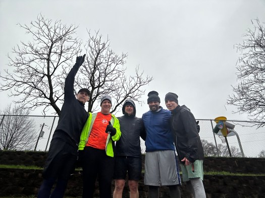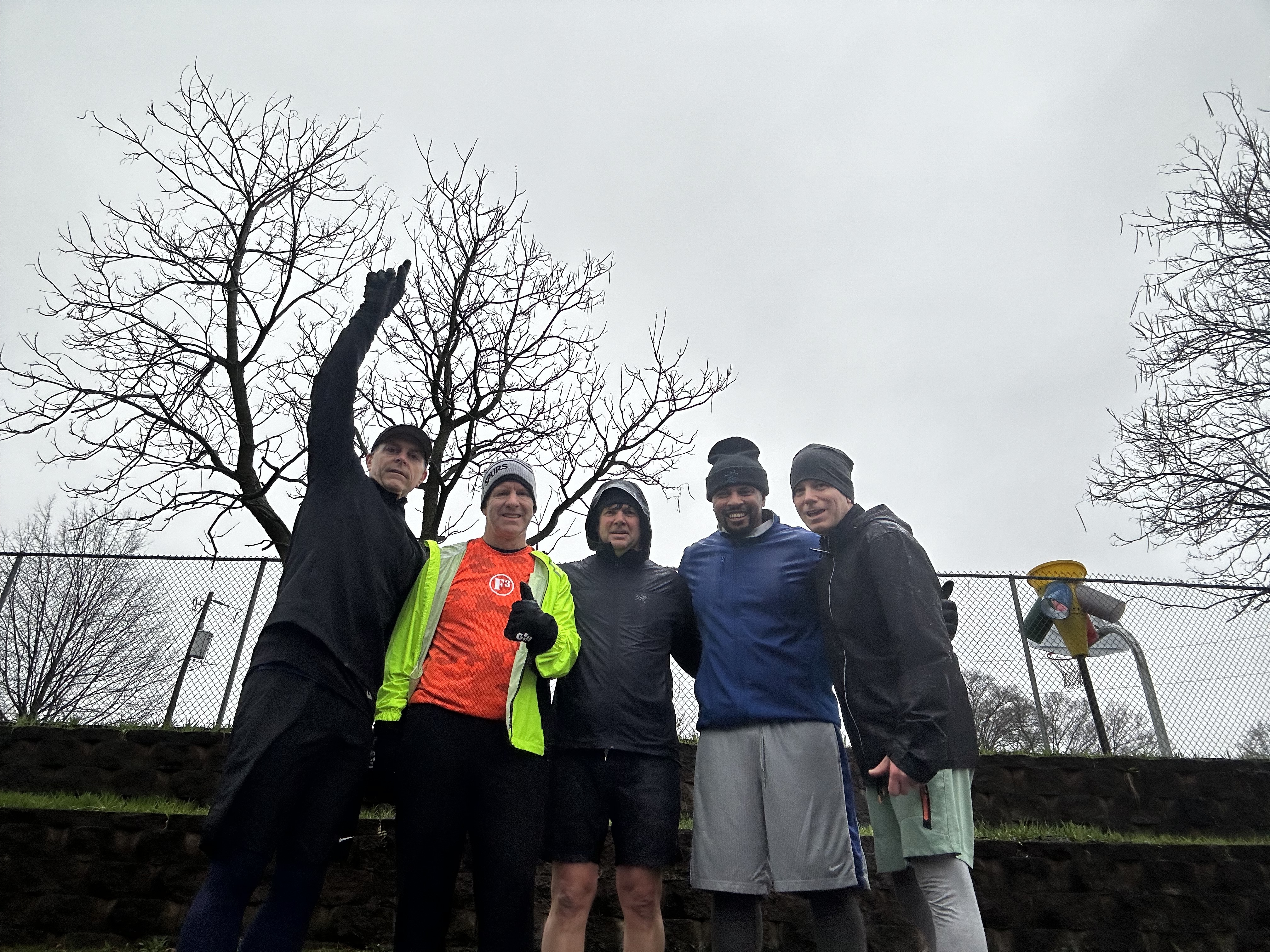 THE THANG: Mostly cadence of 5 burpee; 10 OH press; 15 merk; 20 curl; 25 coupon squat; 30 coupon calf raise followed by a F1 swervey lap through the park. Repeat. Mix in some some WW2s and Bonnie Blairs in the exercise circuit and some sprints in the lap circuit.