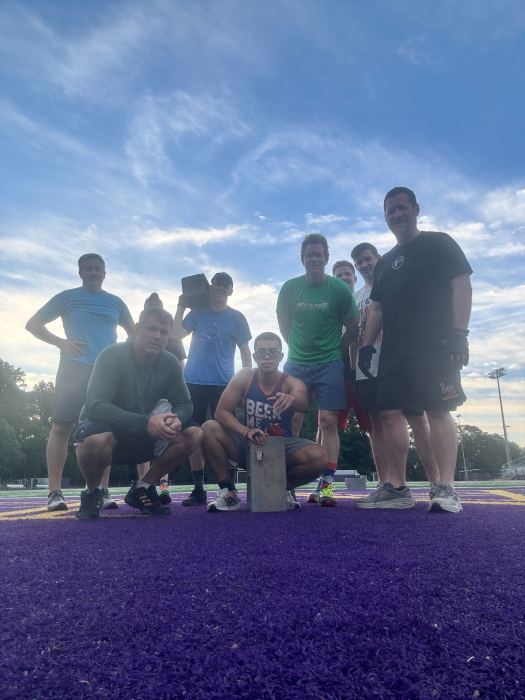 THE THANG: Split in pairs, one person runs to goal line and back while other does the work, the. Switch until number is met. 75 merkins, 125 curls, 125 sit-ups, 150 squats, 175 press, 200 calf raises. Burpees whenever the song says Roxanne MARY: crunches, flutter kicks