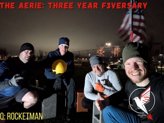 It’s been three years since the launch of The Aerie. It’s been four years YHC started working out with F3. It’s been a lot of time in the gloom, a lot of situps, pushups, and passes back and forth across this field. As a reminder to myself…