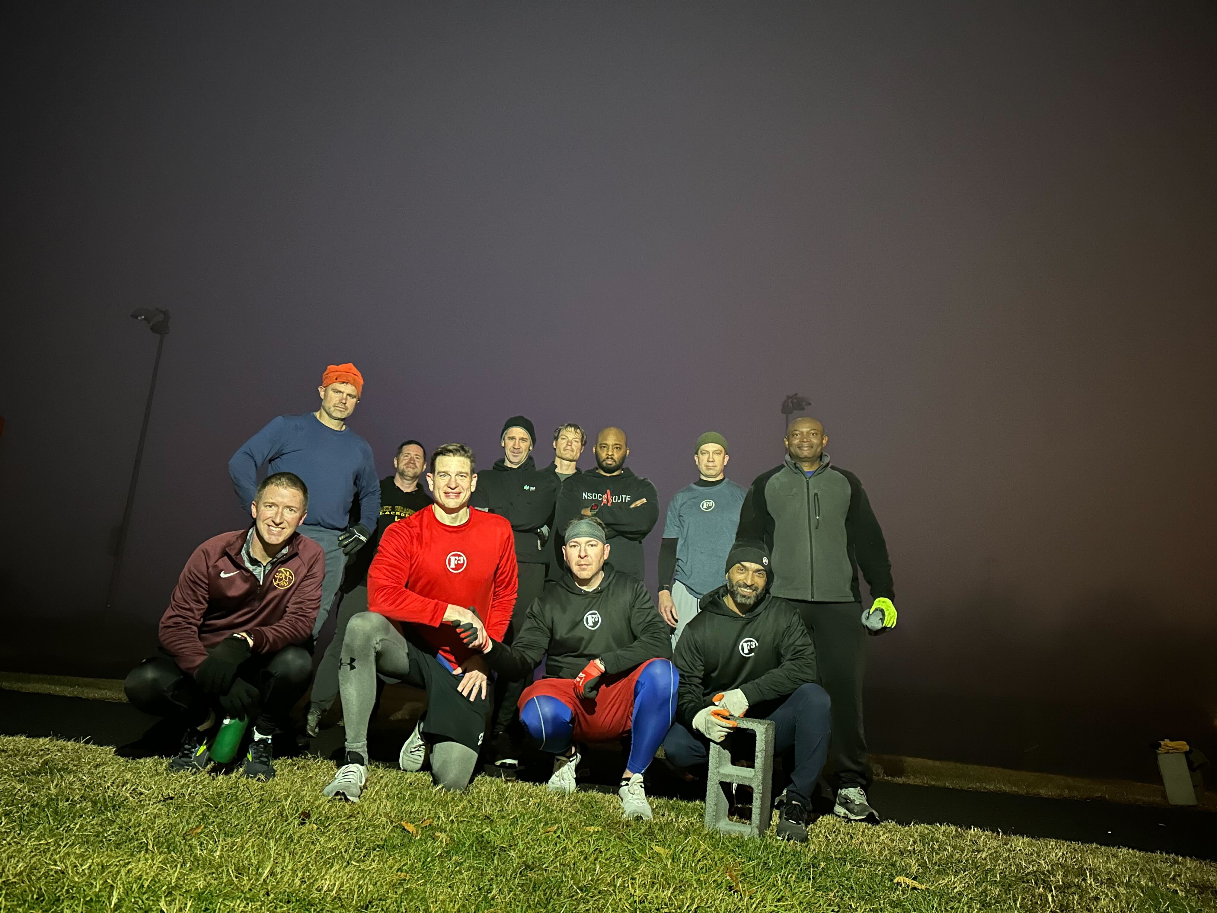 The PAX divided into teams or 3 and 4, everyone with a block. The challenge is to run 10,100 yds as a team.