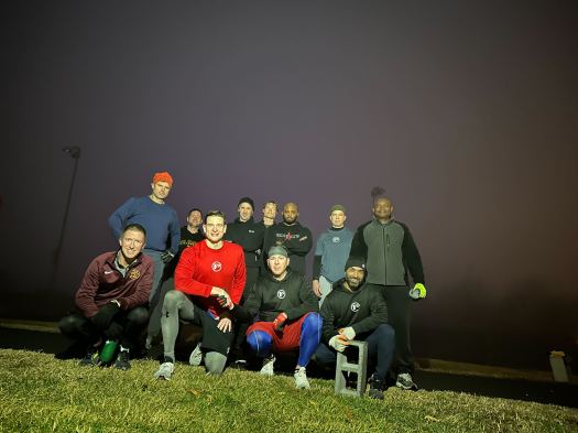 The challenge begins with one pax running with their block rifle carrying to the opposite goal line, does one blockie, then moves the block one yard closer to the starting goal line.