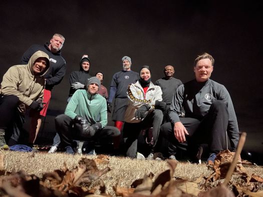 On Monday we started a 11s involving merkins on one end, decent flight of stairs at Acropolis, and then Burpees on other.