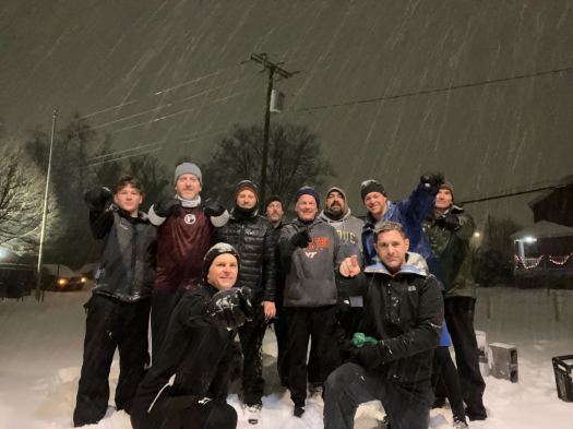RD 3: 5 Burpees; 10 Thrusters; 5 Burpees; 20 Lunges; 5 Burpees; 30 Cactus Jumps; 5 Burpees; Lunge Walk to ~20 yard line; 5 Burpees; Reverse Lunge Walk home.
