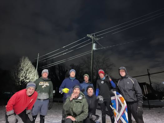 THE THANG: 1. 11s – Burpees/WWII (slow going in the snow); 2. Divide PAX into 2 – 1/2 sled/body weight exercises; 3. Yell out “burpees” at any time during the workout and the PAX does 5 burpees. 100 burpees total (unofficial) MARY: flutter kicks 30; toy soldiers 30; d-dog/d-kick 20; burpees