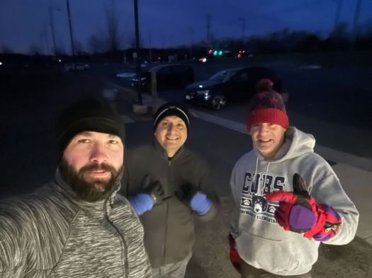 – Do 5 more merkins and sprint up the hill 2x, then 5 merkins and sprint 3x, etc. MARY: