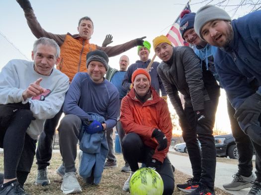 – Object is to score by slapping the ball through a goal (any other PAX’s legs). The PAX who scores retrieves the ball while all other PAX perform burpees, starting at 1 and laddering up to 10 – For balls out of bounds, the pax perform 10 penalty merkins.
