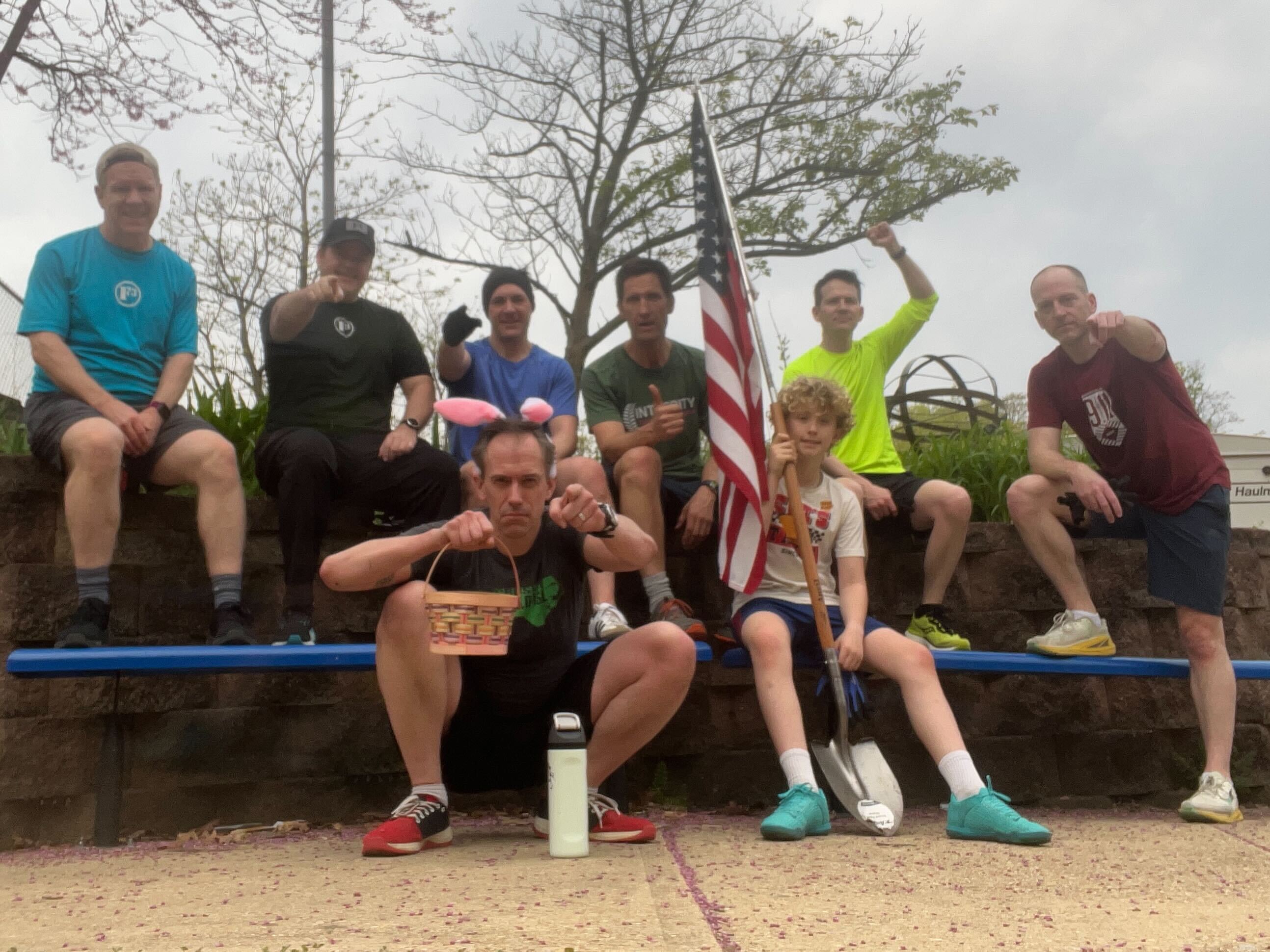 THE THANG: The Easter Bunny hid a dozen eggs on the soccer field, each containing three evolutions (10 reps, 20 reps, 30 reps). PAX took turns sprinting to retrieve them and leading those movements. MARY: none