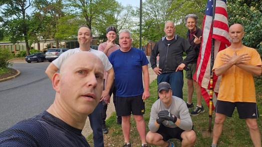 – Mosey to the bottom of the bigger hill (Rickey-Bobby). 4 groups, each does -2-3-2-1 Jacobs ladder, while others do – (1) Shoulder Taps, (2) LBCs, (3)Squats, (4)plank