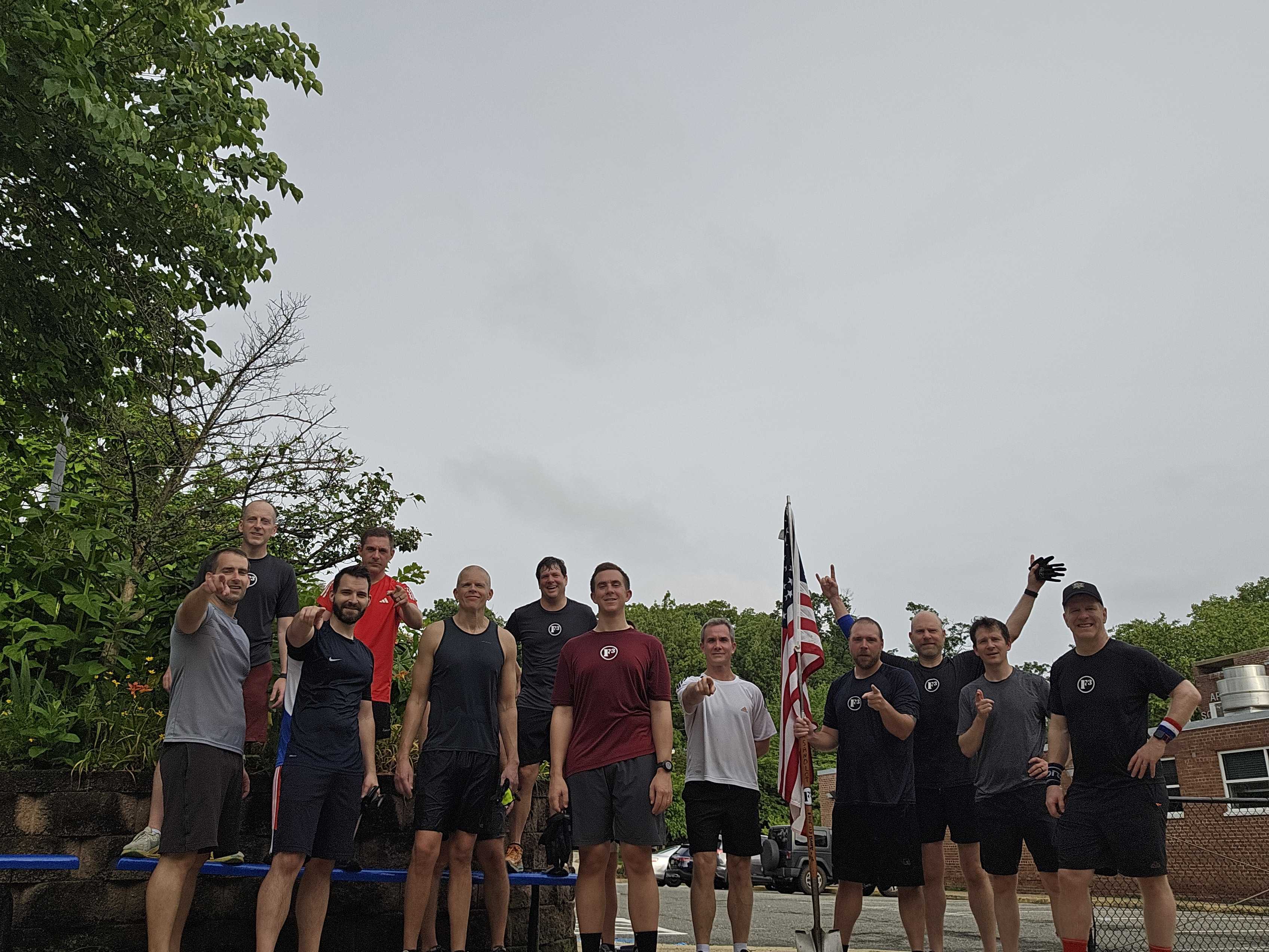 THE THANG: The J.G.: 3.0 of running with a stop about every 0.5. At each stop, do a set of merkins, body weight squats, LBCs, dry docks, single count lunges, and American hammers. Started with 2 reps at the first stop and increased exponentially to 64 reps at return to the AO. MARY: American Hammer.
