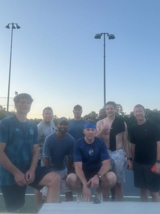 THE THANG: 60 seconds on 10 off merkins, dips, step up, calf raises, WW3 over head stretch, something else I forgot… 3 rounds of this with some running between MARY: a few