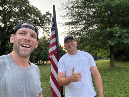 1 person does 10 blockies, then 10 squats, then 20 curls