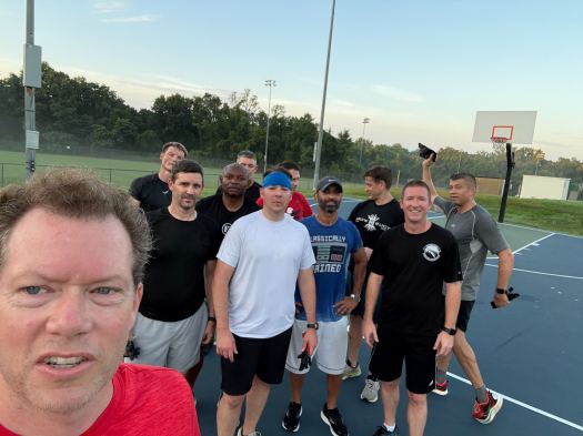 Split into 2 groups and Finished with b-ball suicides while other group did merkins/big boys and switched.