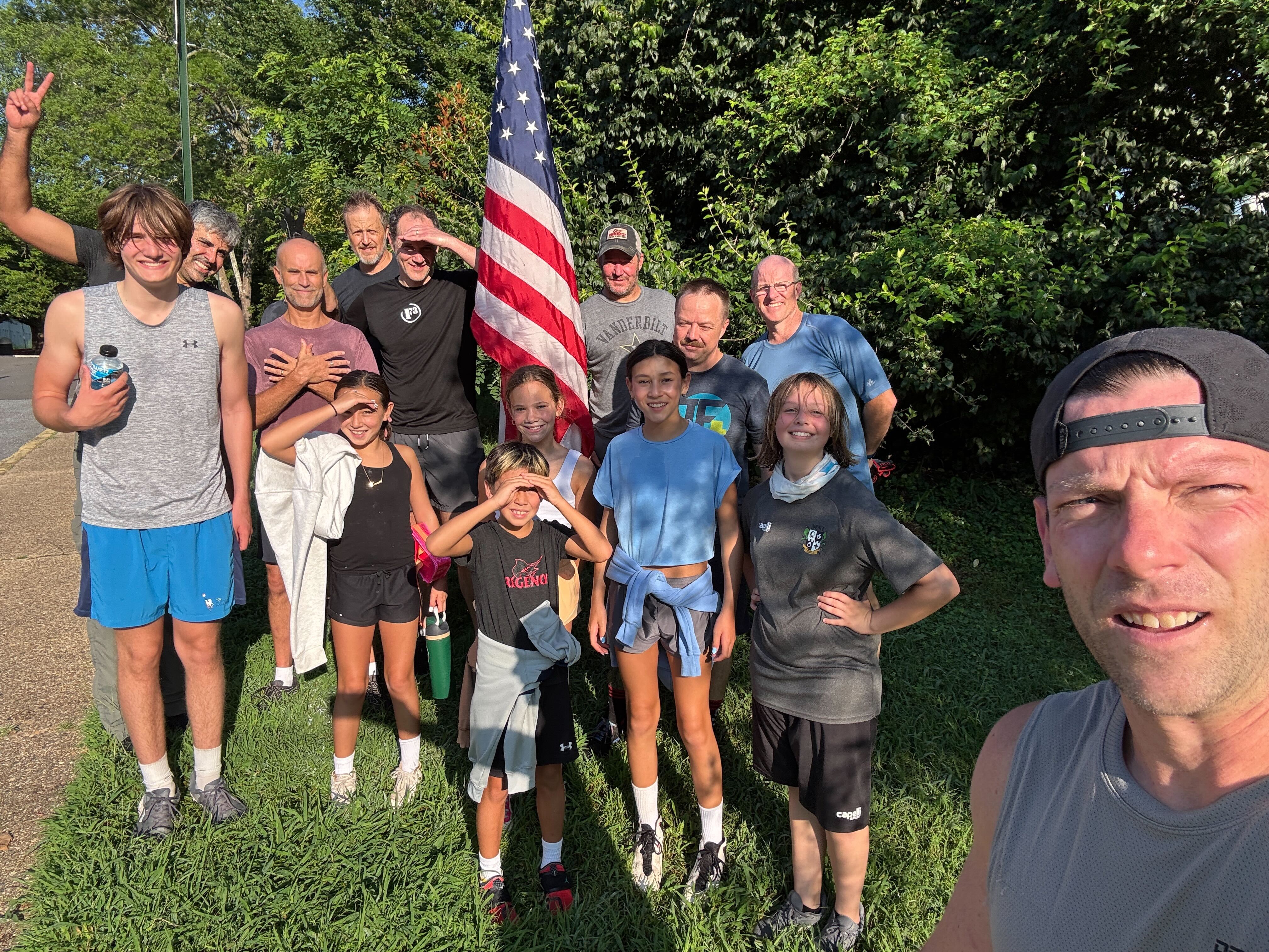 El Capitain to dot, sprint to far side and back to dot, el captain to start line 25 curls SC OYO