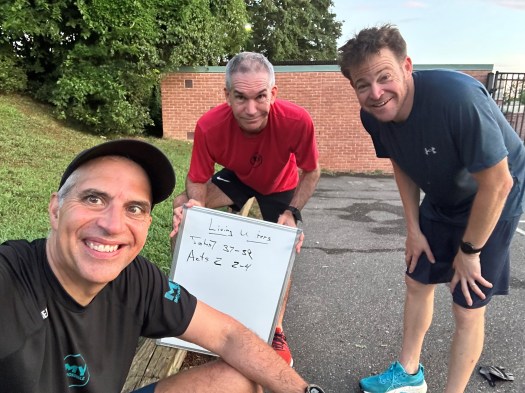 THE THANG: Sets of 25 of the following exercises with bear crawl/lunge across hoops court between sets. Every 3 minutes when alarm sounds stop and do 3 burpees. – Smurf Jacks