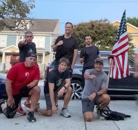 Mosey to the bottom of some steps, climb them and do one merkin at the top. Repeat 20 times, adding one merkin each time to help you remember. Total of climbing the steps 20 times (36 steps x 20 reps = 720 steps in total = 37.9 floors of the WTC) & 210 Merkins. Some added a ruck for EC and others added burpees at the bottom of the stairs.