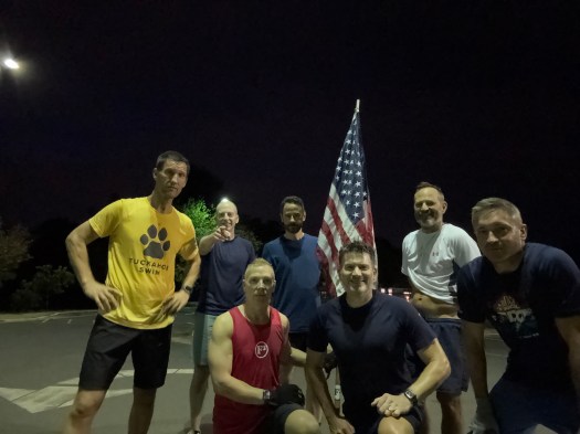 THE THANG: PAX carrired their coupons across the field and assembled on the hill for DORA. PAX completed the following while partner sprinted the hill, did a burpee, and crawl beared back down. 100x Chest Press