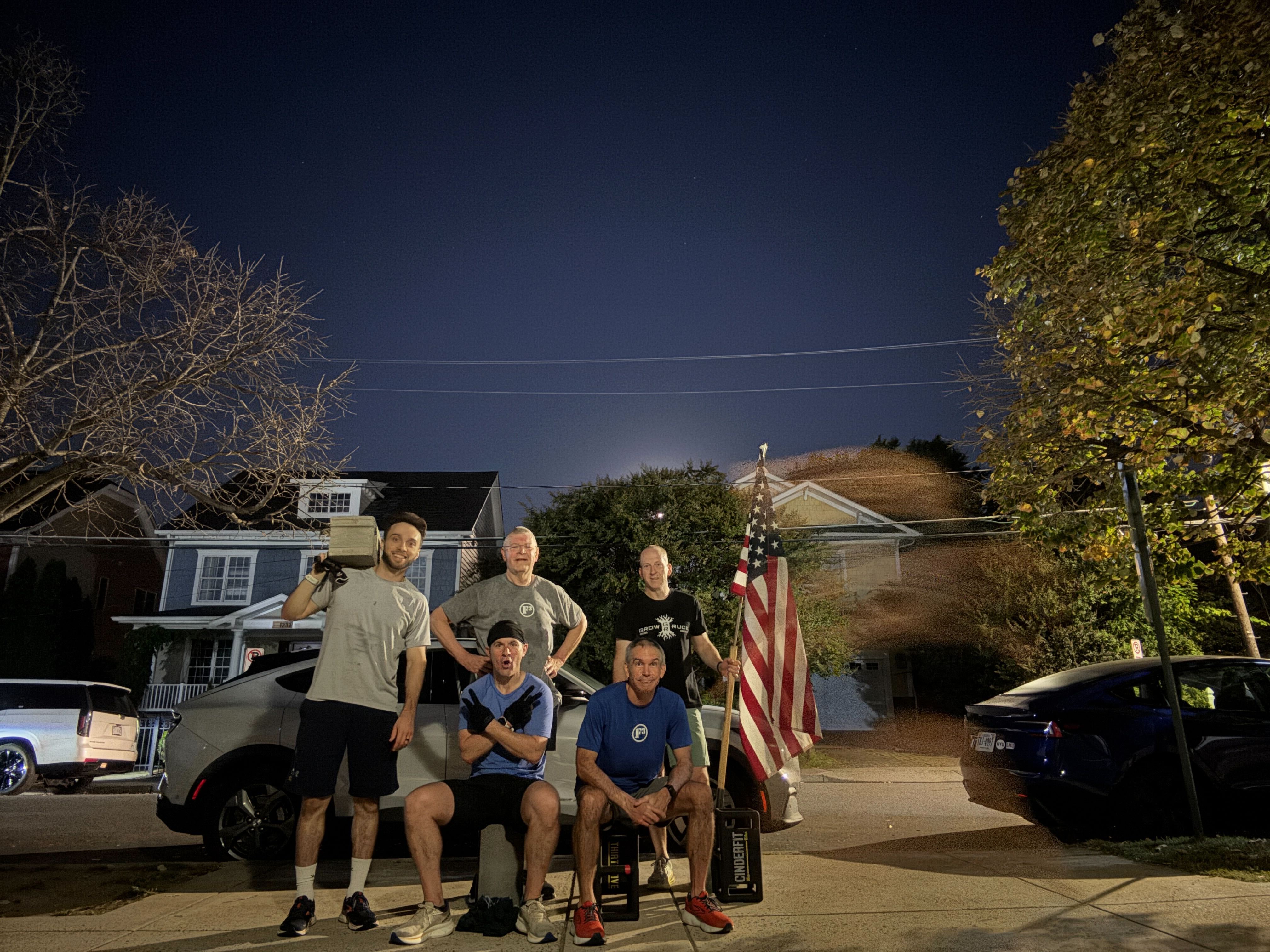 3 Rounds of Tammy Wynettes – One partner performs 10 of one exercise while the other performs 10 of the other and then switch. Continue until each PAX has performed 100 reps of each exercise. • Merkins & Coupon Squats