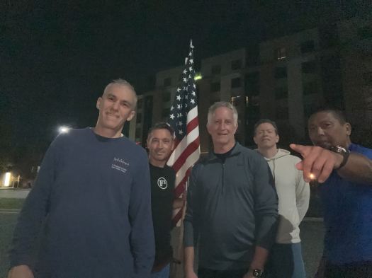 Start at the bottom of the stair, five reps of a called exercise, run to the top, and complete 5 reps of the called exercise. Run back to the bottom and complete 5 reps of the same exercise. This is known as a Triple Nickel (5/5/5). Werkins, squats, squat, lunges, big boy sit ups.