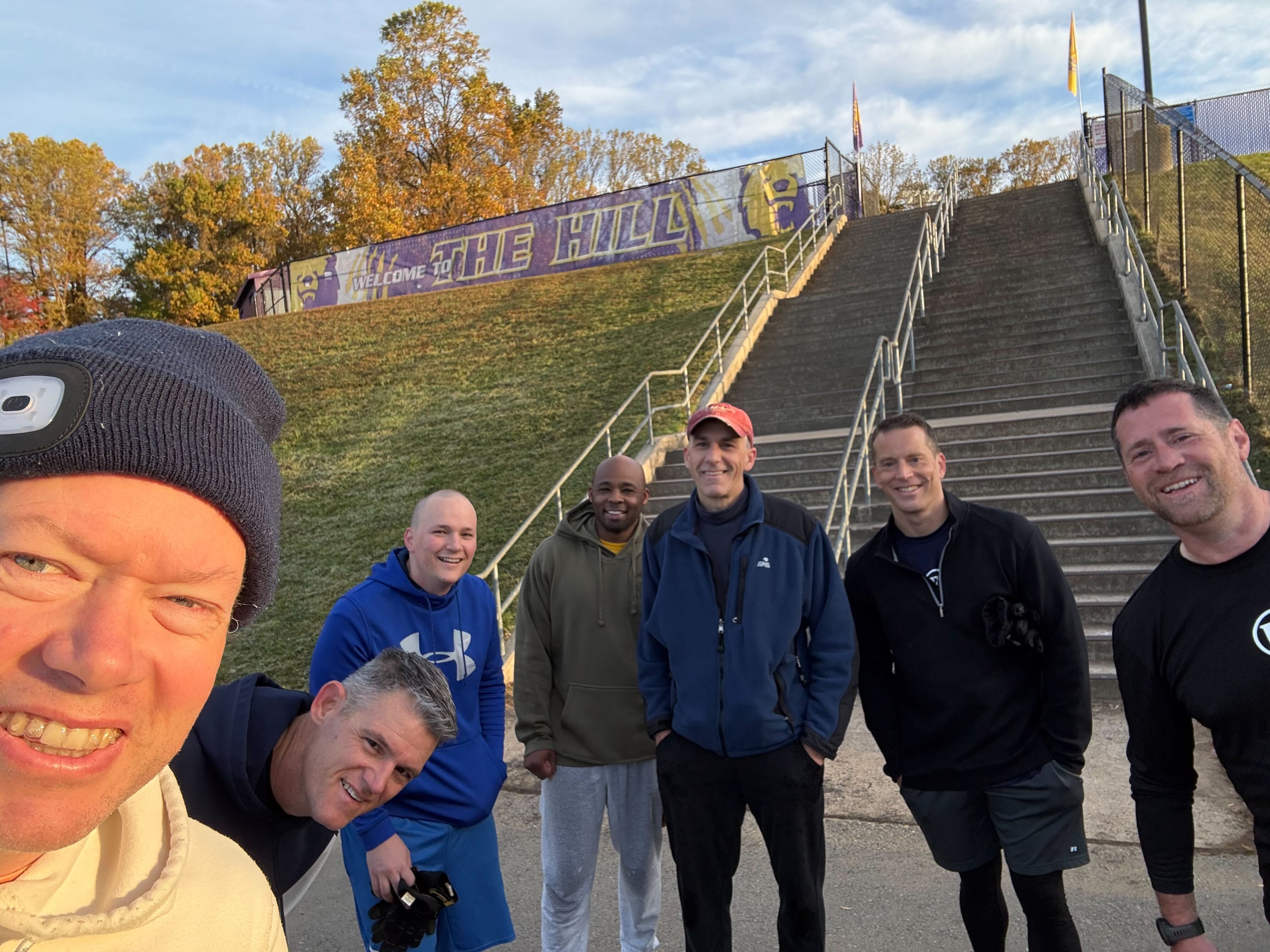 THE THANG: around the school. Each stop did 5 burpees plus exercise that each pax shared. Then frisbee.