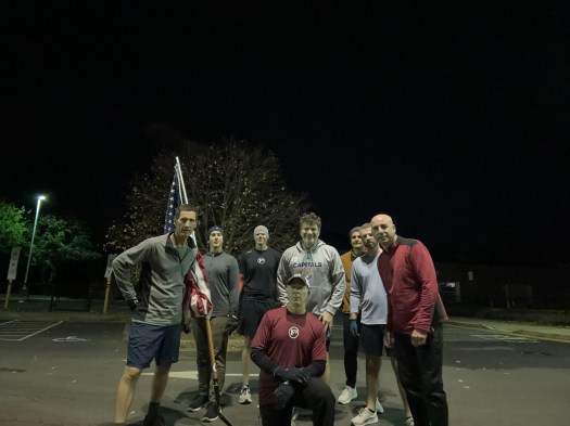THE THANG: Run around Bishop O’Connell stopping with 4 stops. STOPS 1,2, 4: 1 Minute Planks, 10 Burpees, 10 Triple Pump Squats (which are surprising hard!). STOP 3: 2 x 20 Dips, 20 Step Ups, 20 Incline Merkins MARY: 30 LBCs, 20 WW IIs, 20 Freddy Mercuries