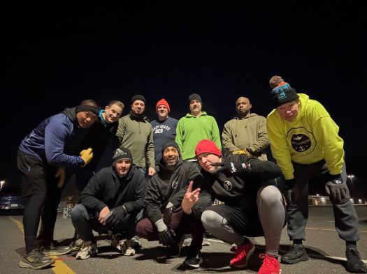 THE THANG: It’s complicated – teams took turns holding hands with Bertha and Cindy. There might have been some stealing from other teams, collecting rocks, burpees, and other exercises going on.