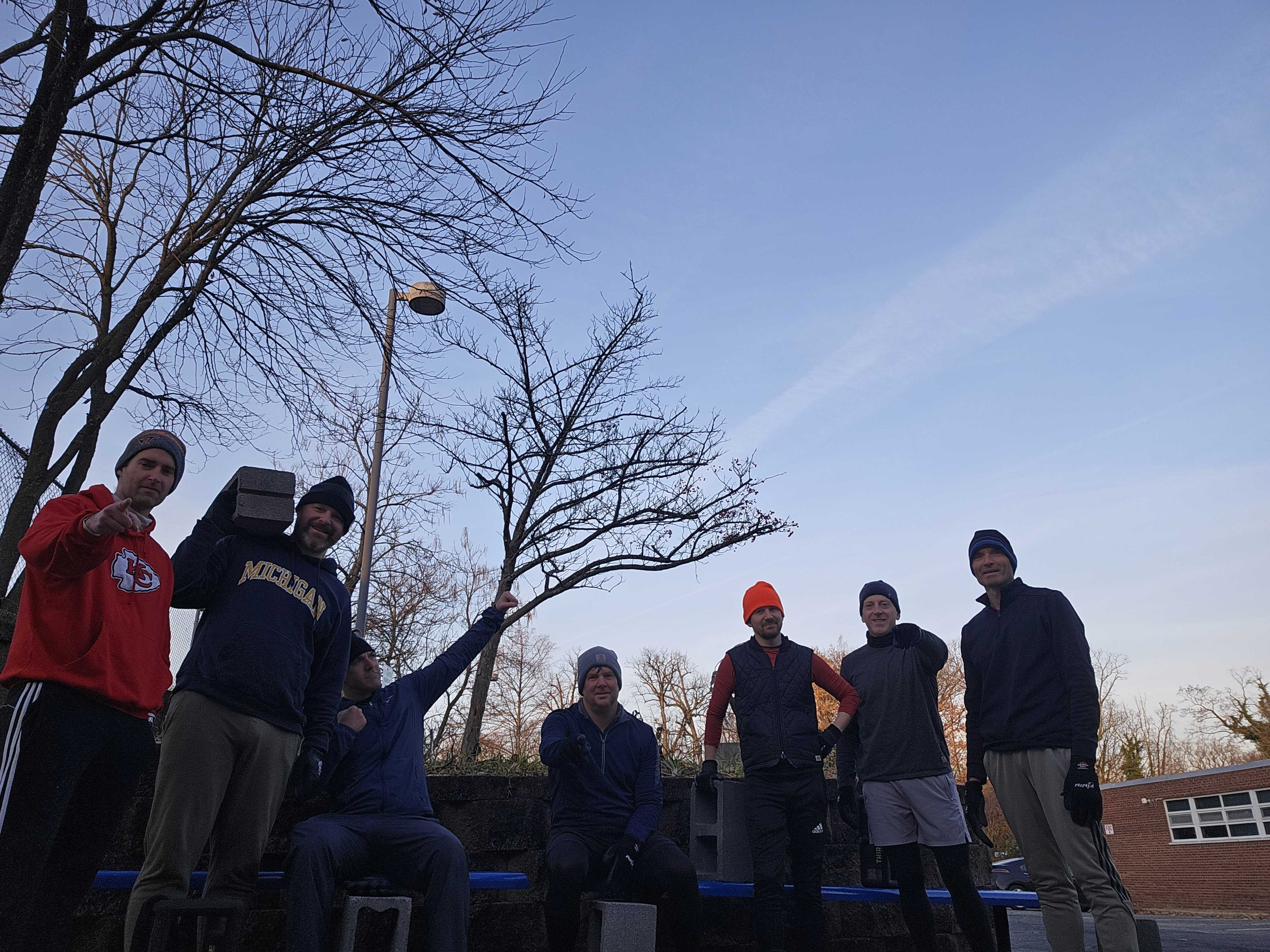 Set 1: Blockies, overhead press, coupon squats, coupon flutters Set 2: Thrusters, curls, coupon calf raises, WWIII