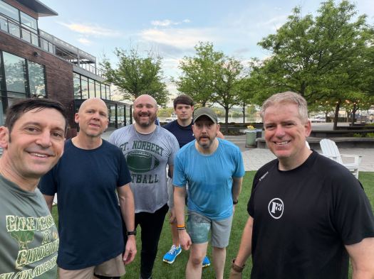 Eventually the first (right most) PAX has nothing to do but to hold a standard HiGH plank as the sequence plays out. This continues until everyone has completed the “sandwich” of a single arm ball hold (of ball #1), their five (5) reps of NO SURRENDERS, followed by the second single arm ball hold in HIGH plank using ball#2. Note: In order for the last PAX- after on the far left- after completing their five (5) NS reps- to properly gauge how long to hold that single arm ball hold of ball #2, all other PAX may consider repeating five NO SURRENDERS for a second time but in unison.