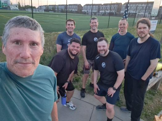 10 reps, run 40 yards, 10 reps, run 40 yards, etc to 50 reps – (4xMerkins + 4xMt Climbers) x3, so 12 reps for this one