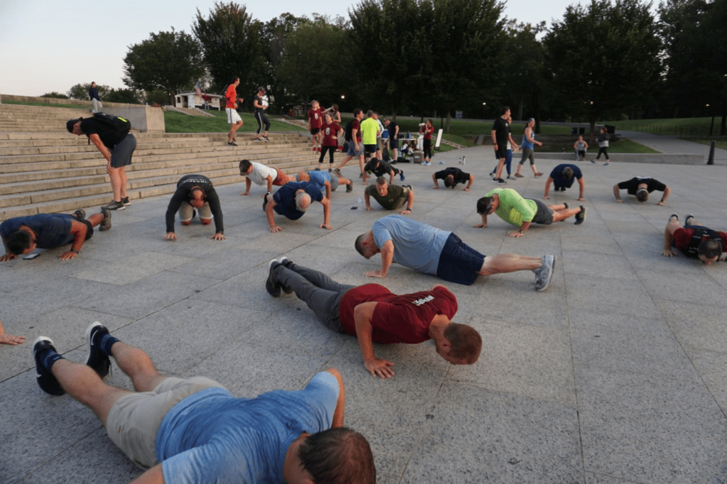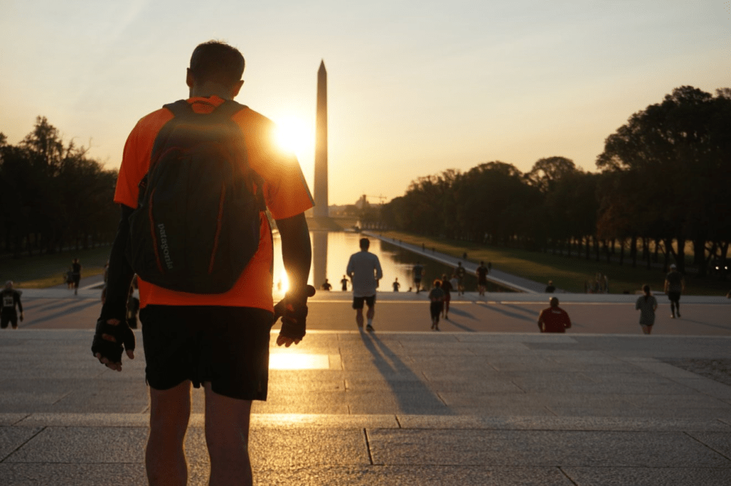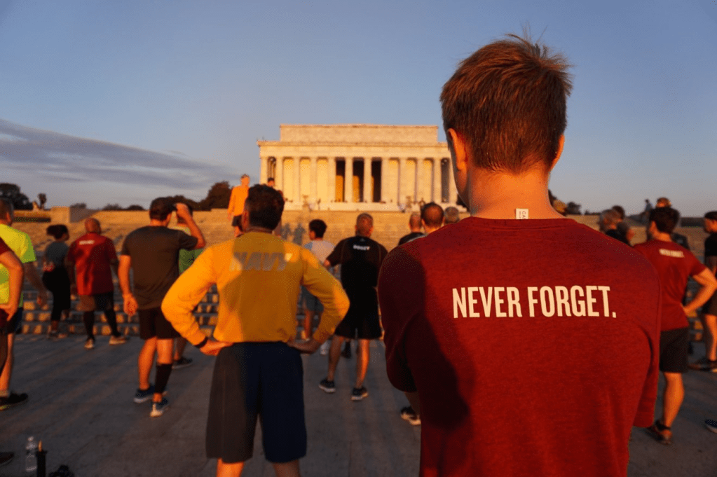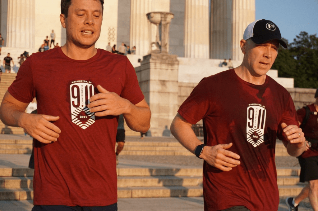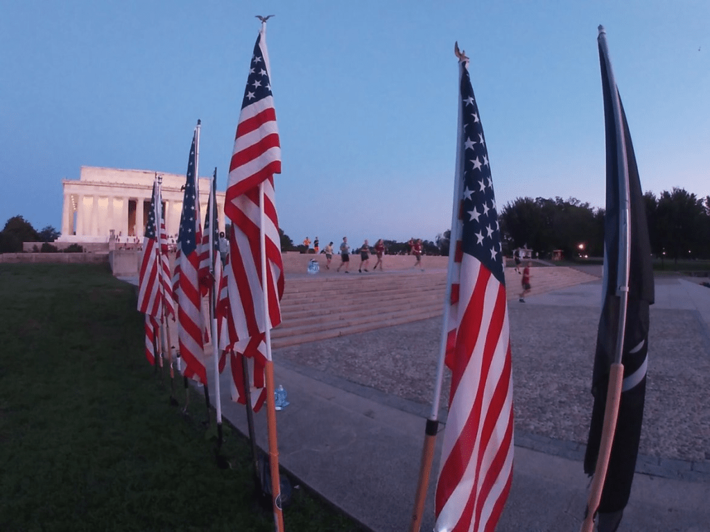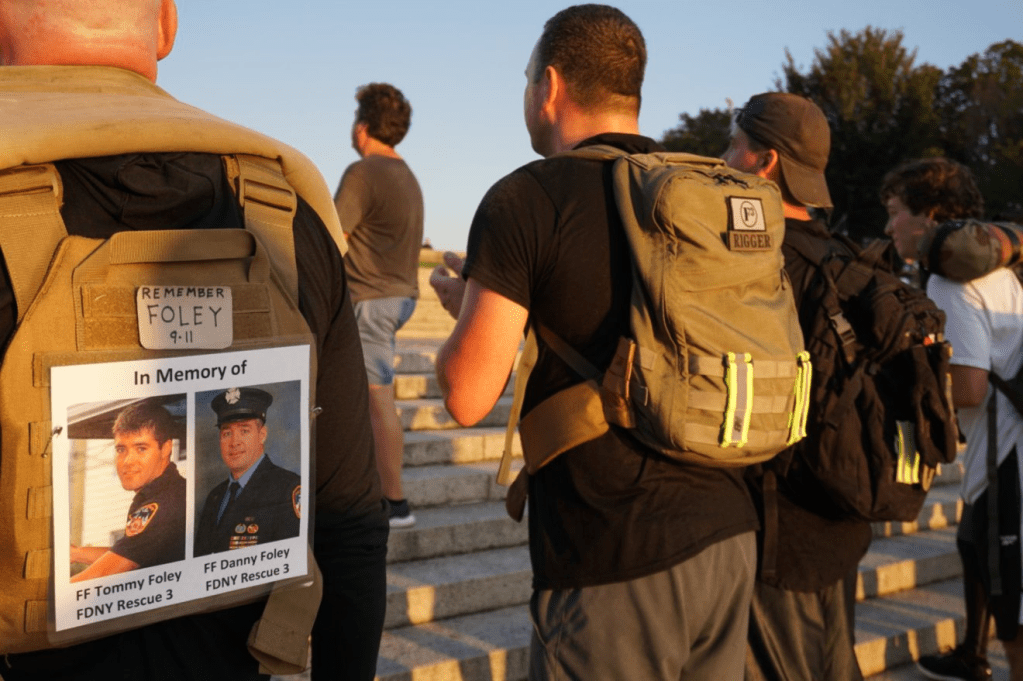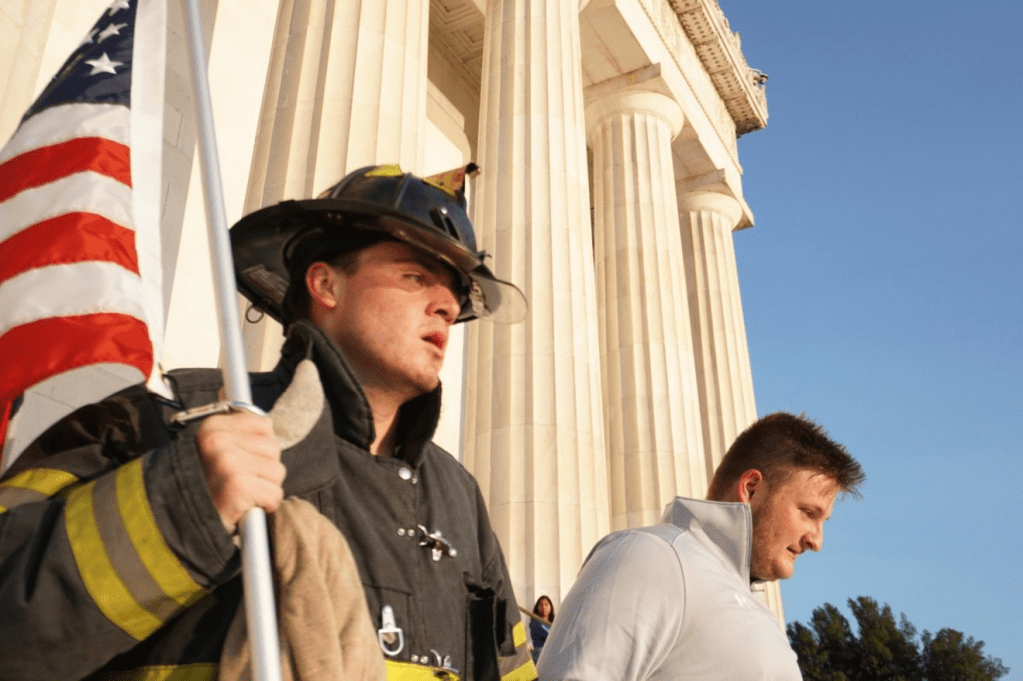 We climb the steps to the Lincoln Monument 24 times to honor the 110 flights of stairs first responders climbed on 9-11-2001.