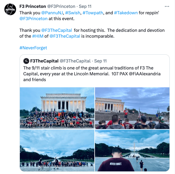 Monday, September 11, PAX arrived at the Lincoln Memorial at 04:30 to begin the stair climb at 04:45.