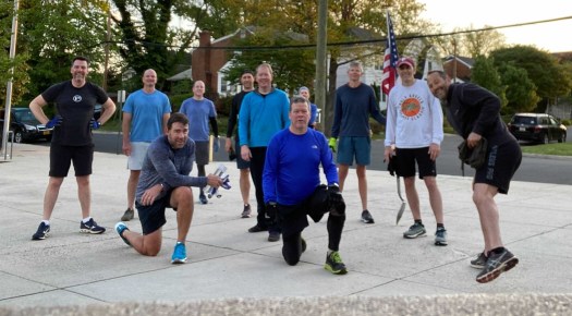 The PAX jogged the return trip as a group, passing all of the Dogeballs between everyone. There was no winning here – only a 2 burpee penalty for everyone if any ball hit the ground. Or 4 burpees thanks to Trolley managing to knock another Dogeball out of the air with his Dogeball. Don’t hate the player, hate the game.