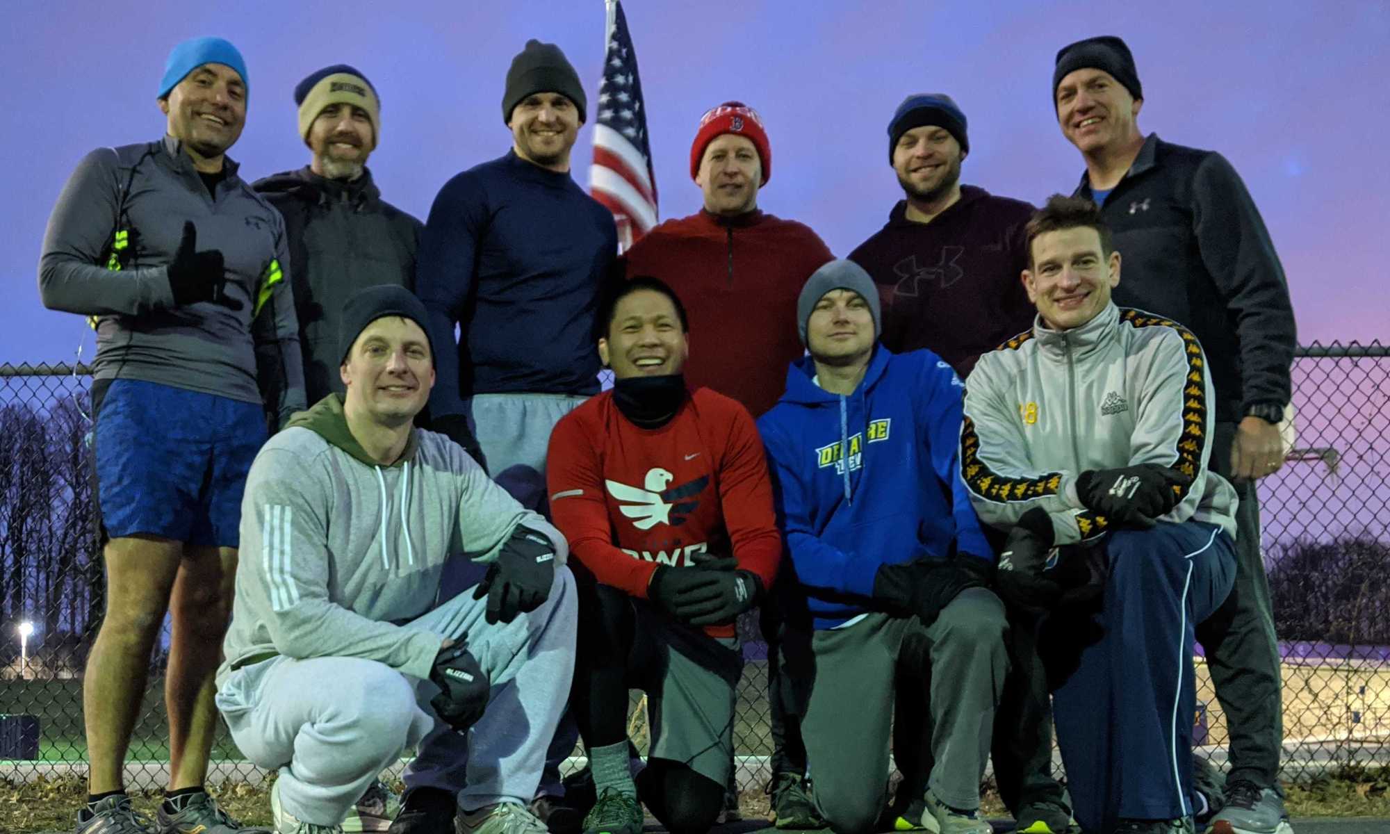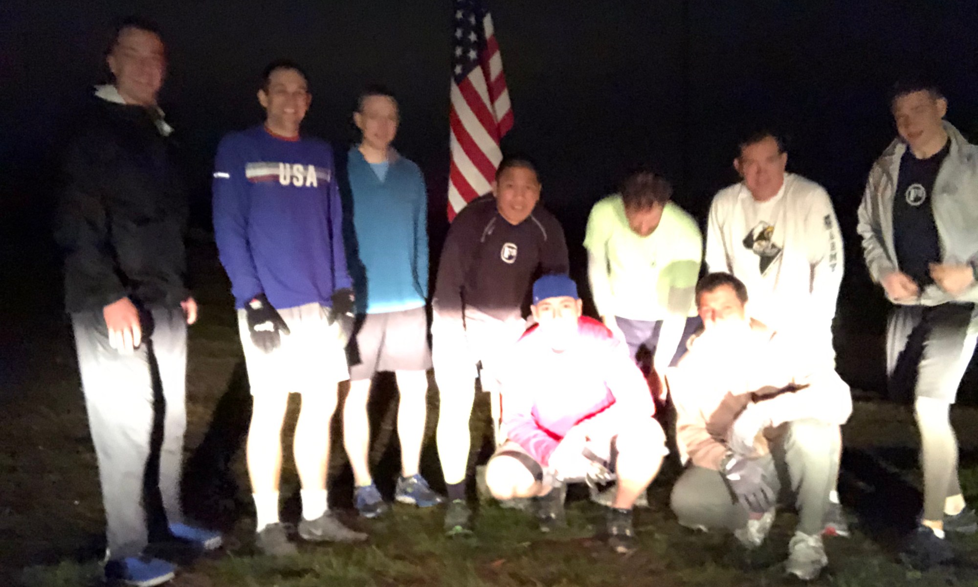 Mosey to base camp: (4) 100-yd sprints with 10 merkins in between each sprint