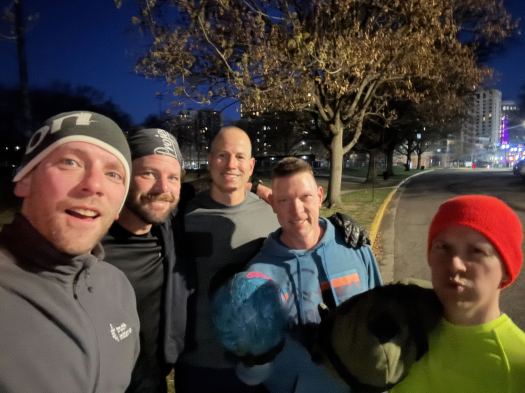 We did 5 yard increments of merkins on the block, bear crawl back, move block up 5 yard for new count of merkins and continue a similar-ish pattern for big boys, curls. Squats…