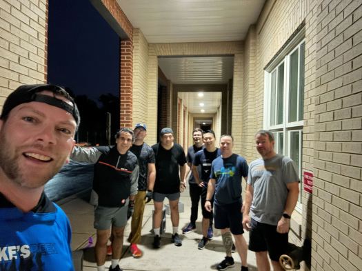 All together, the PAX repeated the bear crawls, crawl bears, forward and reverse lunges, for 20 yards each and stopping to do an extra set of the round 4 EMOM exercise.