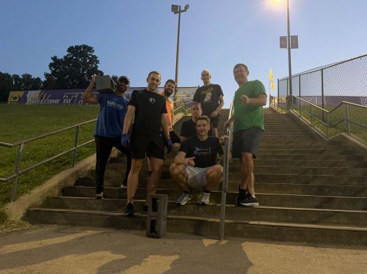A running 4-minute EMOM timer (3 burpees) runs throughout the entire workout. EMOM starts the workout with first set of 3 burpees.