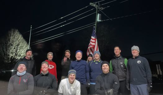 Phase 2: The Fram sailed to Siberia. PAX ran three laps on the snowy interior of the football field, to represent the travel across the Barents, Kara, and Laptev seas.