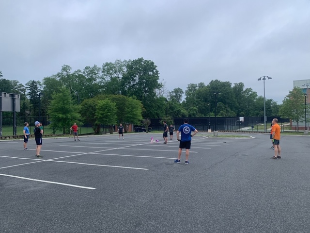 Table Tennis. A fast-paced sport. The PAX started at the goal line, sprinted to the 10, did 1 burpees, sprinted backwards to the goal line, and did another burpees. 5 times back and forth seemed about right for a point, and we called it quits.