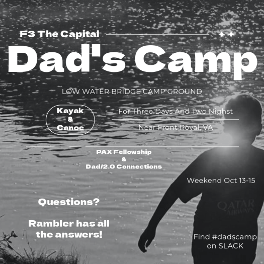 Dads’ Camp is an annual event for the PAX of F3 The Capital to take their 2.0s out for some adventure and fatherly bonding!